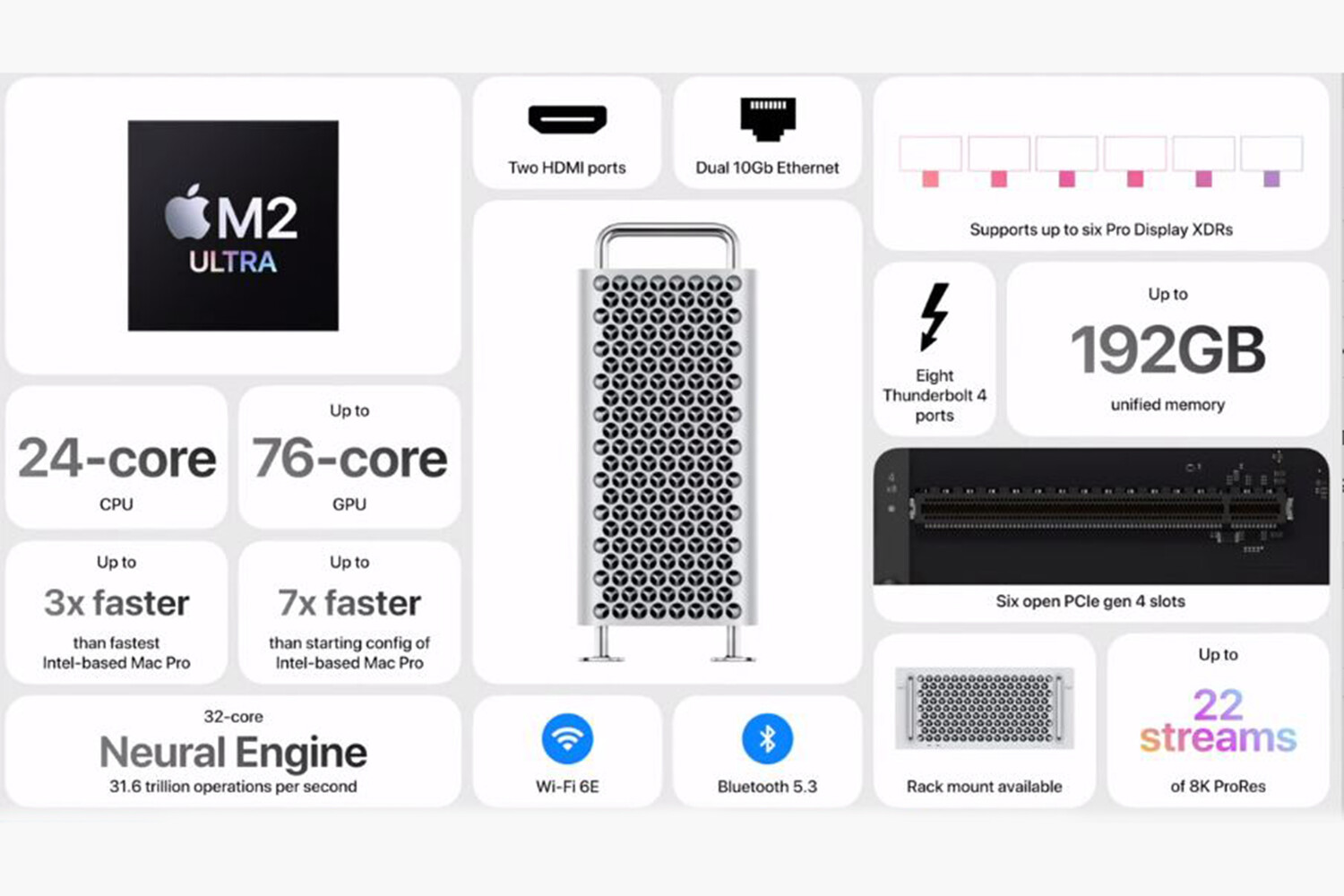 Mac Pro — это еще одна звезда на презентации WWDC 2023. Системный блок с чипом M2 Ultra привнес новую эру в десктопные компьютеры. Несмотря на то, что базовая производительность этого устройства сопоставима с Mac Studio, Mac Pro имеет намного больше вариантов для настройки благодаря поддержке до шести разъемов PCIe 4.0, что открывает новые возможности для подключения SSD-дисков, видеокарт и других компонентов. Mac Pro также обладает множеством портов, включая восемь портов Thunderbolt 4, два HDMI и два 10-гигабитных Ethernet. Эта новинка будет интересна профессиональным пользователям, которые требуют от своих устройств не только высокую производительность, но и гибкость в расширении системы. Цена Mac Pro колеблется от $6999 до $11799, в зависимости от конфигурации.